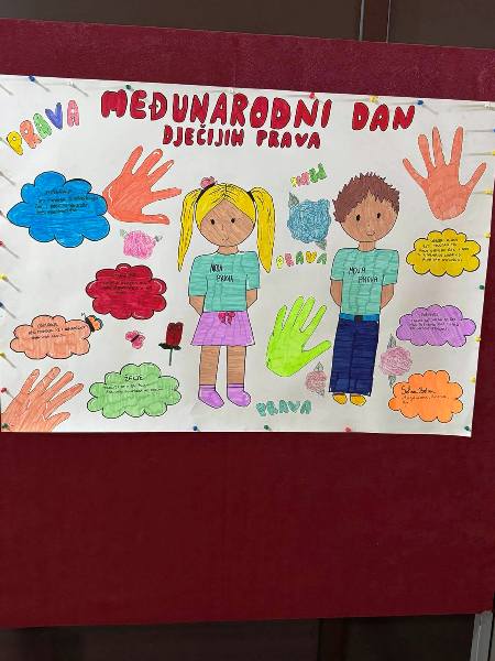 Učenici razredne nastave izrađivali su crteže na temu prijateljstva, ljubavi, prava i dužnosti, dok su učenici predmetne nastave pripremili tematsku izložbu na temu „Dječja prava“.