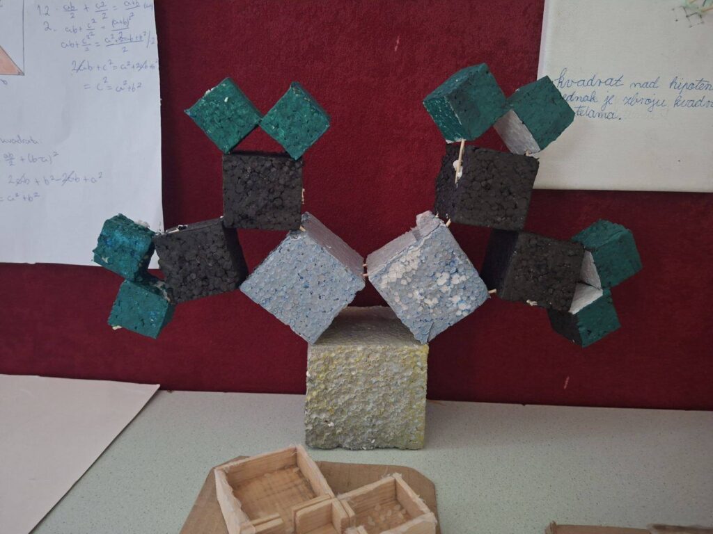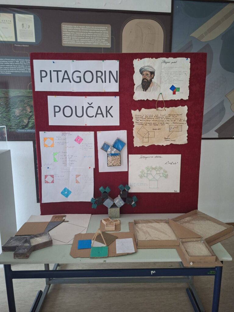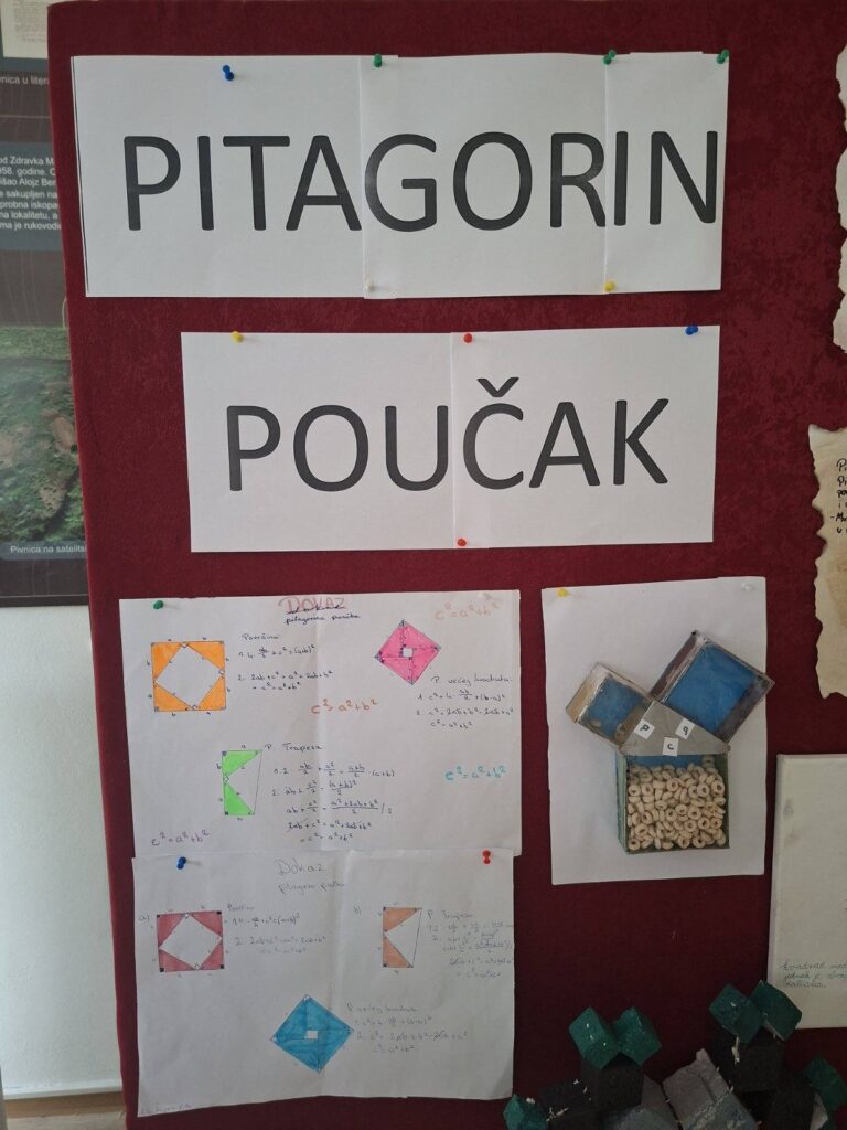 Učenici 9.razreda su sa svojim nastavnicima matematike Gordanom Gavranović i Sanelom Saltovićem pripremili tematsku izložbu na temu “Pitagorin poučak”.